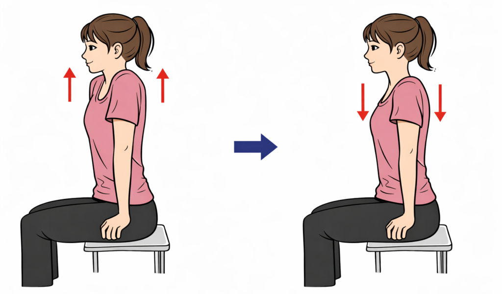 その結果、肩がすくんだ状態が続き、首〜肩まわりの筋肉が休まらなくなります。こうした緊張の積み重ねが、肩こりの悪化や腱板への負担増大につながってしまうのです。