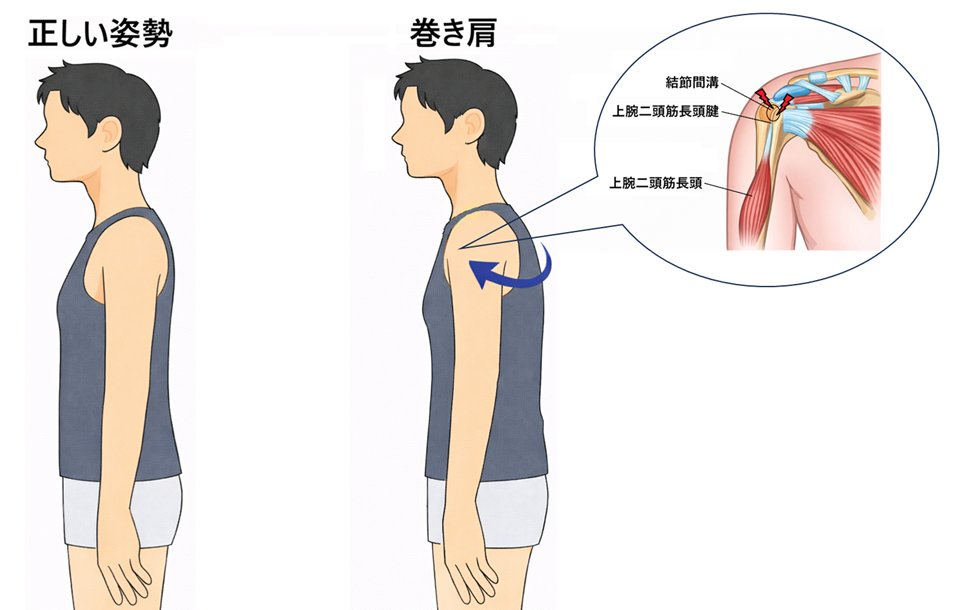 なぜ「巻き肩・姿勢不良」で長頭腱炎が起こるのか