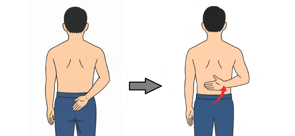 - 腰やお尻に手を回す動き :ズボンの後ろポケットに手を入れる