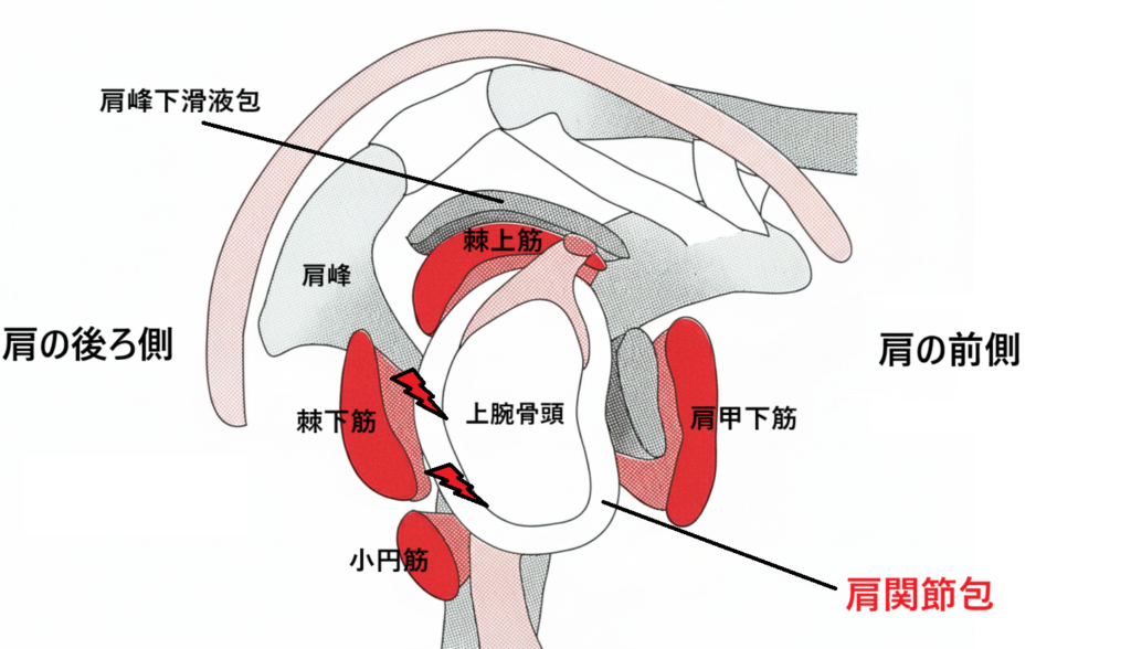 内旋制限は、単に筋肉が硬いだけでなく、 肩関節包の後方・下方の硬さが深く関係しています。