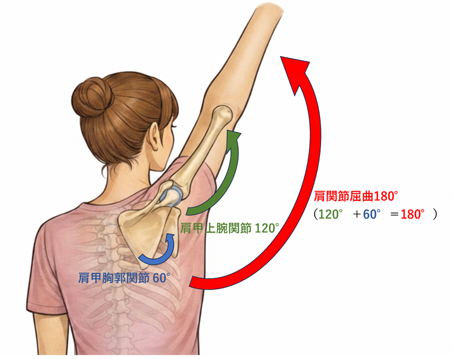 肩甲上腕関節と肩甲胸郭関節の動きが合わさって肩関節の運動となる