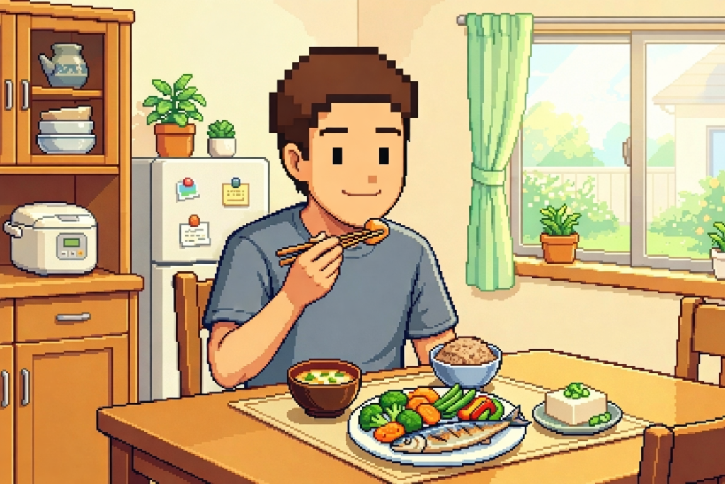 | サバの塩焼き(またはさば味噌・薄め) | ひじきの煮物+蒸しブロッコリー | 豆腐とわかめのみそ汁(減塩) | EPA・DHAとカリウムを同時に摂取 |